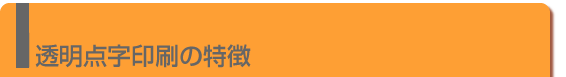 * 透明点字印刷の大きな特徴は、従来の立体インク印刷では難しかった高さ調整を行うことができ、点字の目的に応じての点の高さ調整も可能になりました。